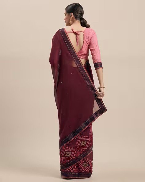 Women Embroidered Saree with Lace Border