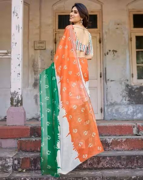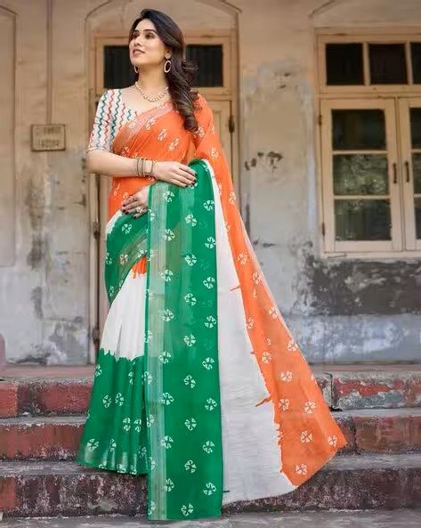 Women Linen Cotton Digital Printed Zari Border Saree With Blouse Piece