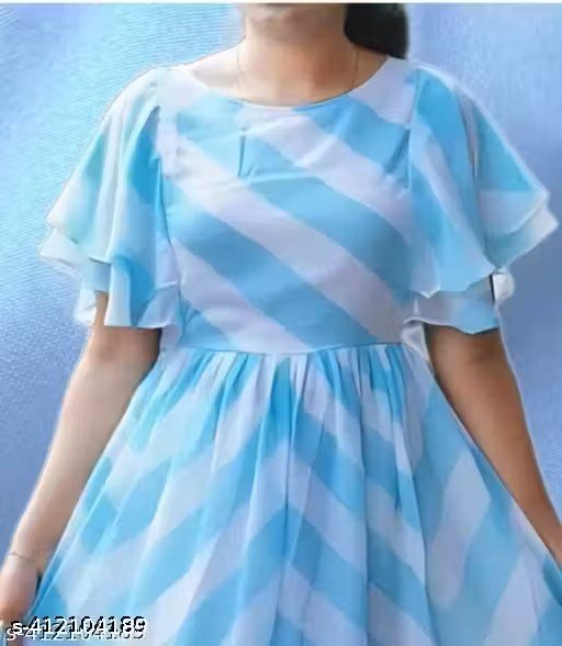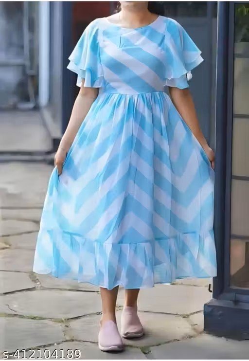Name : Sk Fashion Zigzak Georgette Frilled Midi Dress With Round Nick and Butterfly Sleeves