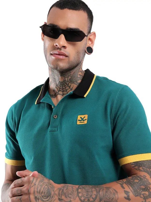 Men Solid Polo Neck Pure Cotton Blue T-Shirt