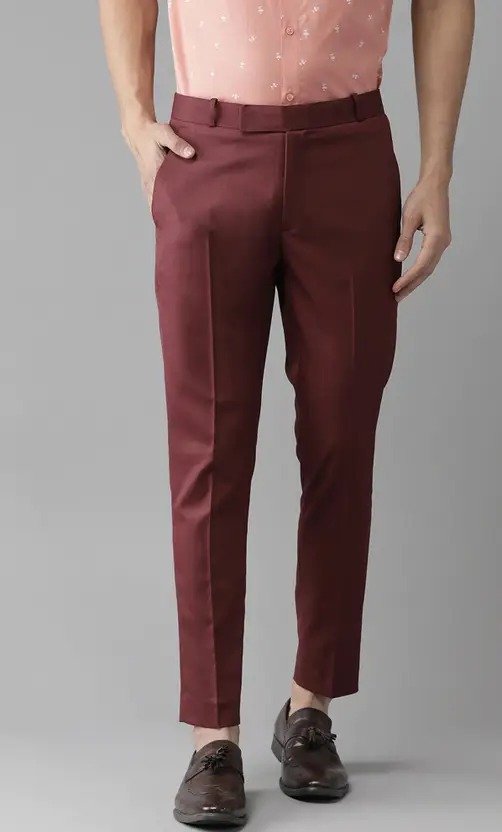 Men Regular Fit Maroon Cotton Blend Trousers