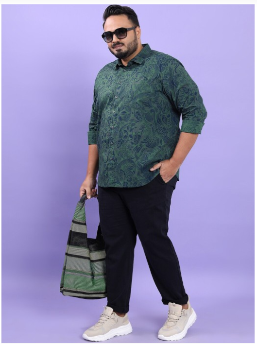 Olive green floral printed opaque Casual shirt ,has a spread collar, button placket, 1 patch pocket, long regular sleeves, curved hem