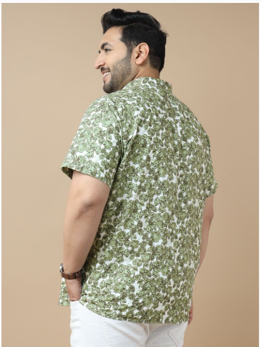 Green floral printed opaque Casual shirt ,has a spread collar, button placket, 1 patch pocket, short regular sleeves, curved hem