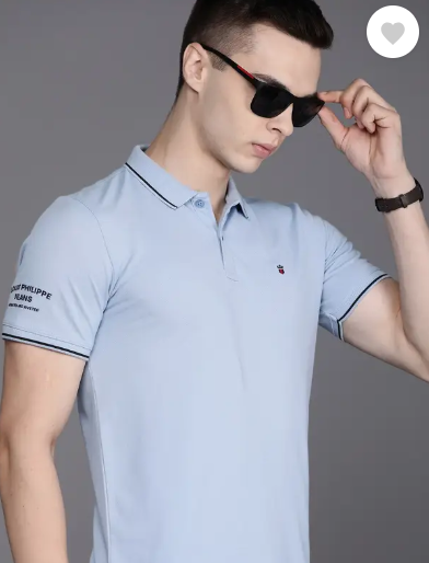Men Printed Polo Neck Pure Cotton Light Blue T-Shirt