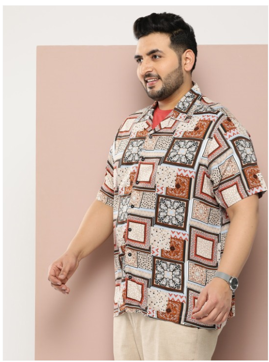 Multicoloured ethnic motifs printed opaque Casual shirt ,has a cuban collar, button placket, short regular sleeves, straight hem