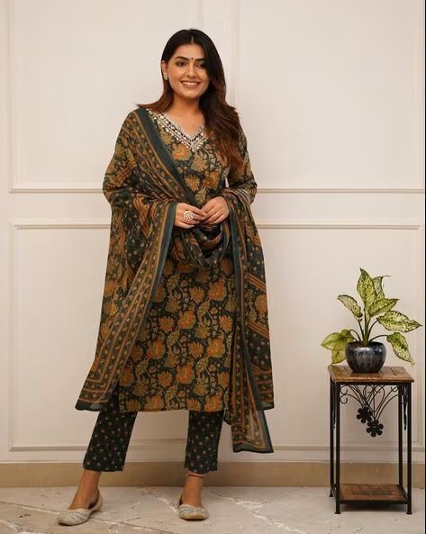 Women Floral Print Straight Kurta with Pants & Dupatta