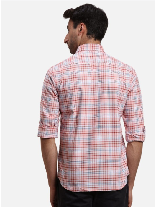 Red tartan checks opaque Casual shirt ,has a spread collar, button placket, 1 pocket, long regular sleeves, curved hem