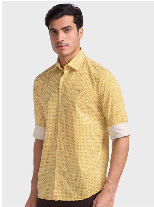 Yellow & white floral printed opaque casual shirt ,has a spread collar, button placket, long regular sleeves, curved hem