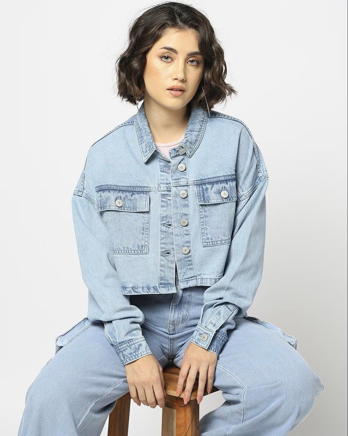 Women Regular Fit Denim Crop Shacket