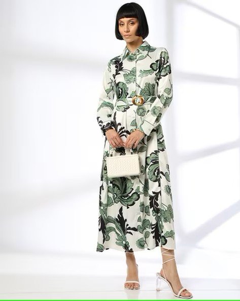 Women Floral Print Shirt Dress