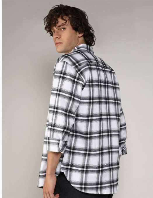 Multicoloured tartan checks opaque Casual shirt ,has a Button-Down Collar, button placket, long regular sleeves, curved hem