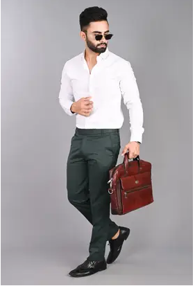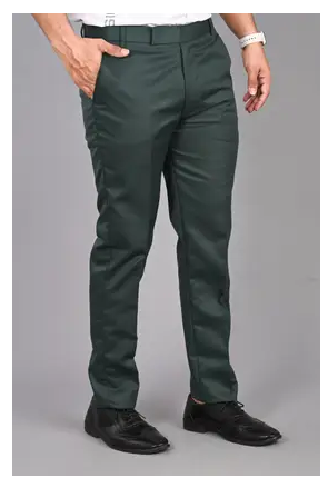 Men Regular Fit Green Viscose Rayon Trousers